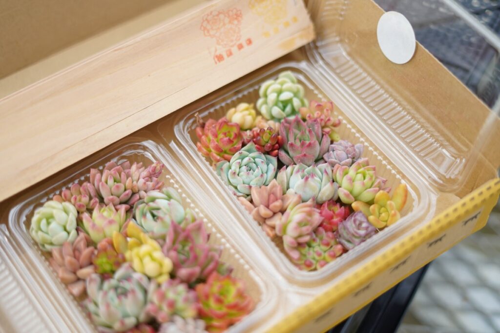 柏屋商店の多肉弁当は、オールシーズン「紅葉した多肉」のみを詰め合わせています。